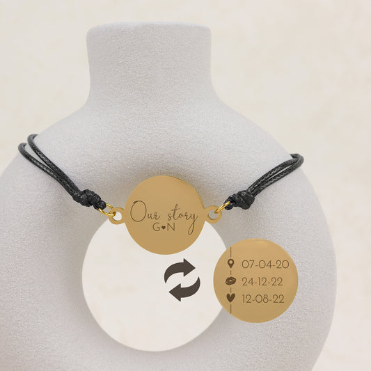 De armband is beschikbaar in goud- en zilverkleurig, gemaakt van stainless steel, en wordt met zorg gegraveerd door Presents2Give. Door de verstelbare zwarte touwtjes kun je de perfecte maat instellen, tot een maximale lengte van 25 cm. Het sieraad wordt geleverd in een luxe verpakking met een exclusief BeYou-sieradenzakje. Zo kun je de armband direct cadeau doen.