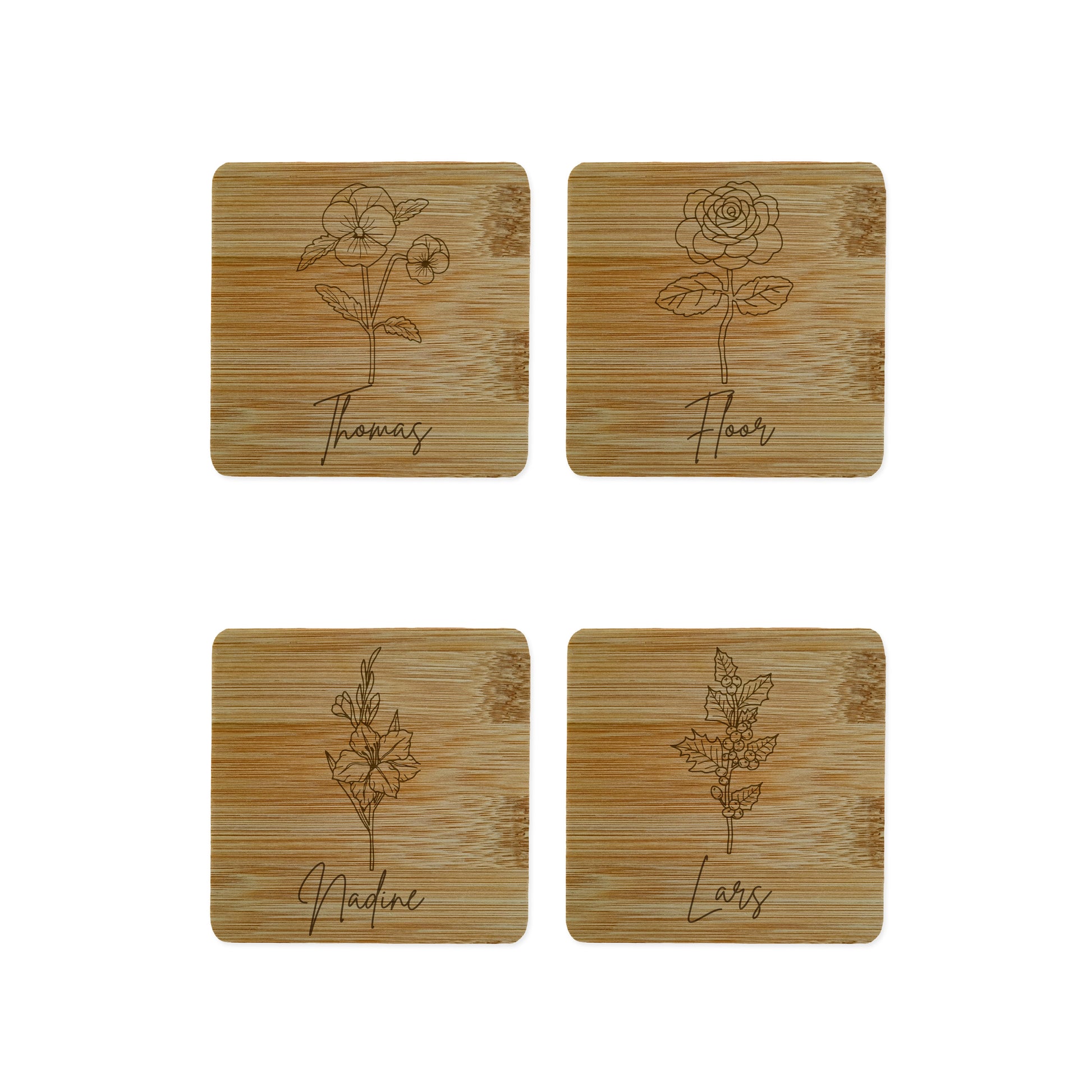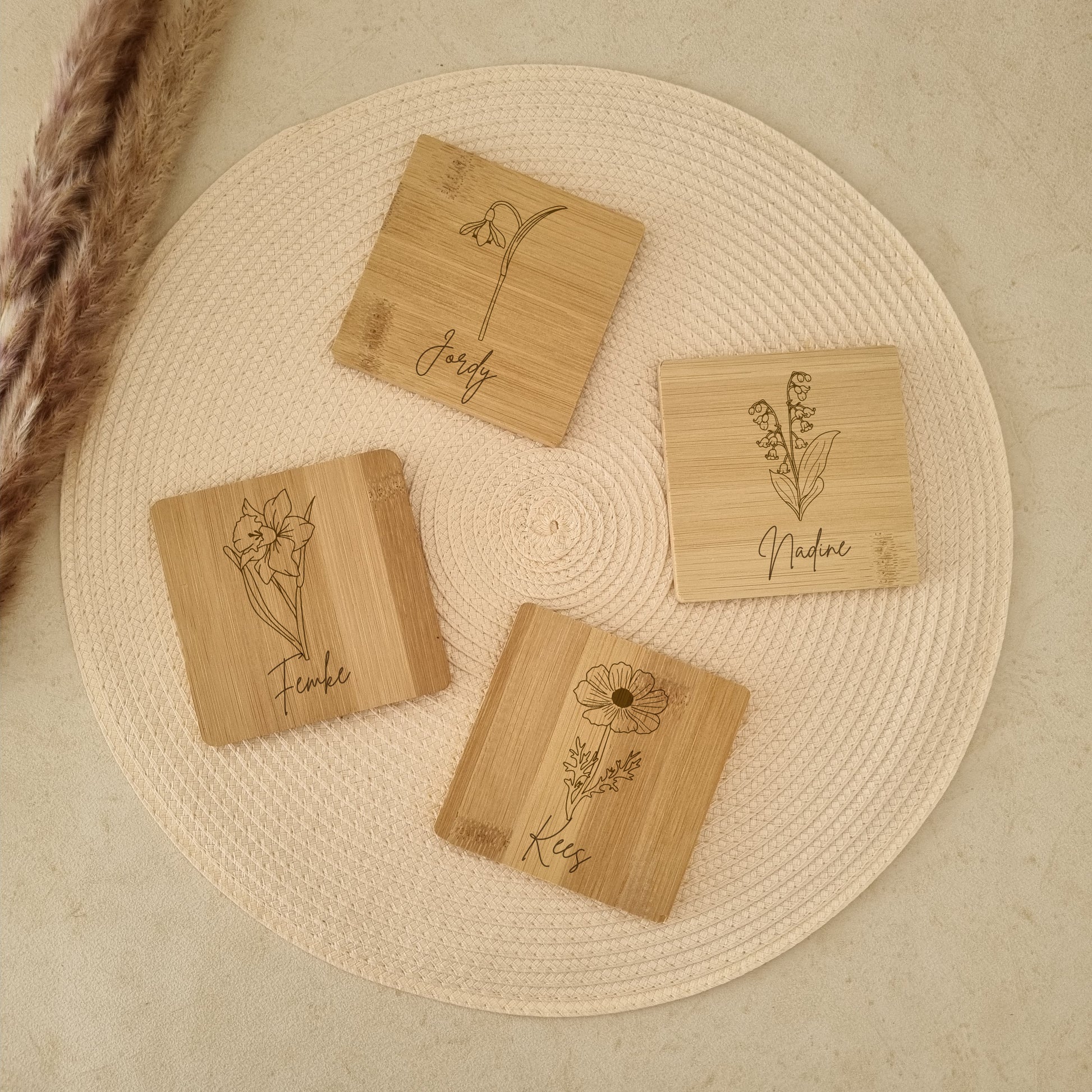 Voeg een vleugje natuurlijke schoonheid toe aan je tafel met onze prachtige bamboe onderzetters met gegraveerde geboortebloemen! Elke onderzetter is ontworpen om de unieke geboortebloemen van een speciaal iemand te presenteren, gekozen op basis van hun geboortemaand. Deze betekenisvolle gravure maakt elk stuk uniek en persoonlijk, waardoor het een prachtig geschenk is voor een geliefde of een mooie aanvulling op je eigen interieur. Of je nu kiest voor de tederheid van de roos voor juni of de levendigheid van de gladiool voor augustus, elke onderzetter vertelt een verhaal en voegt een vleugje kleur toe aan je tafelsetting. Gemaakt van duurzaam bamboe, zijn deze onderzetters niet alleen stijlvol, maar ook milieuvriendelijk en gemakkelijk te onderhouden. Met hun natuurlijke uitstraling en gepersonaliseerde gravure brengen deze onderzetters de pracht van de natuur in huis en creëren ze een warme en gastvrije sfeer voor elk diner of bijeenkomst.