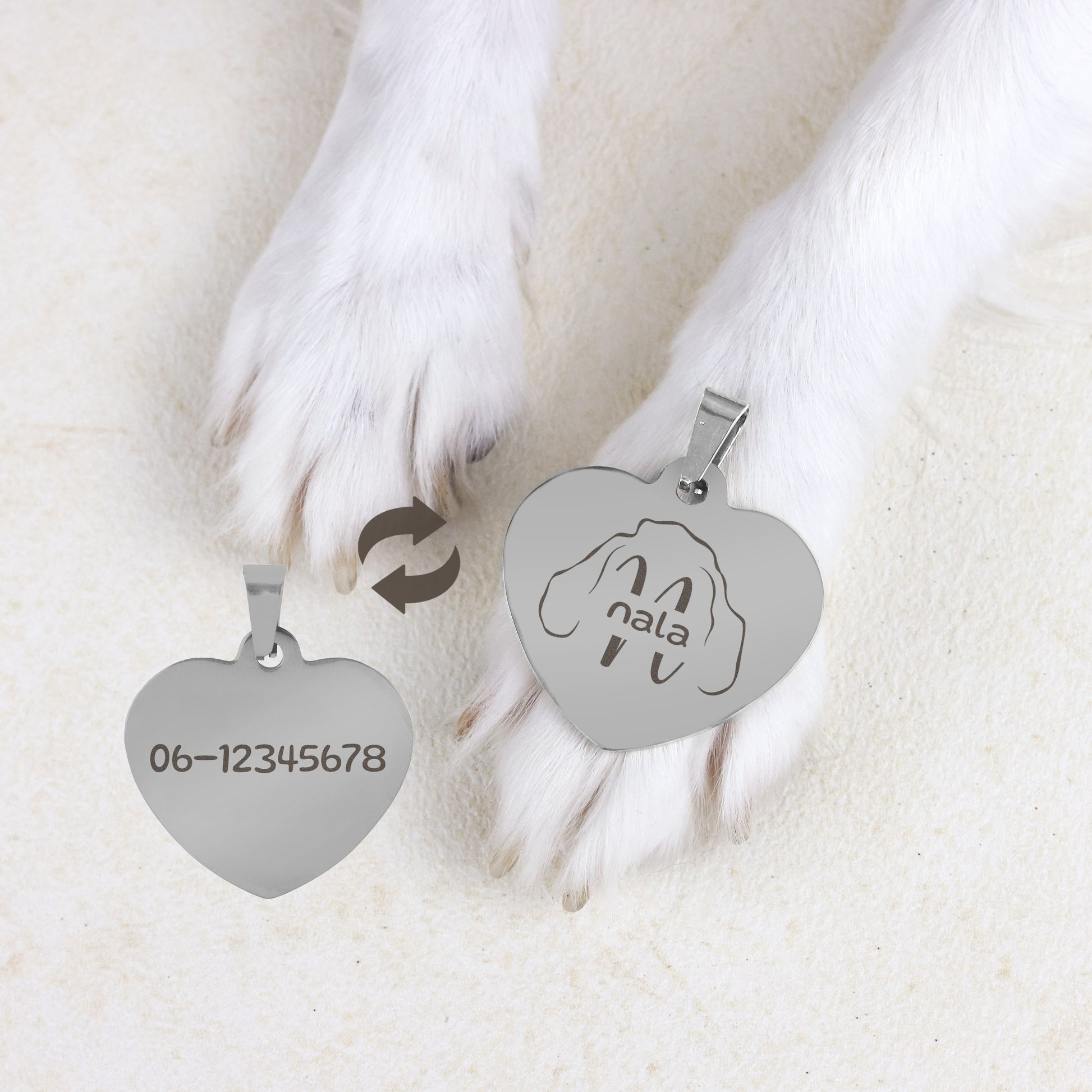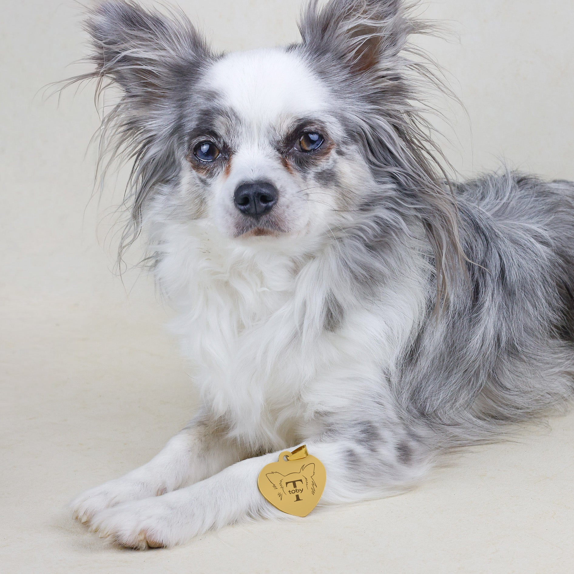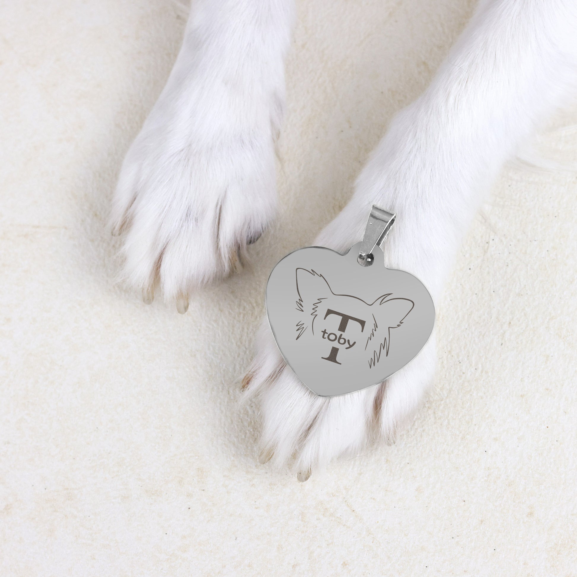 Maak de hondenpenning van jouw hond écht persoonlijk met een gepersonaliseerde lijntekening van de oren van je hond. Zo geef je jouw hond een unieke penning om zijn of haar nek, die nergens anders te vinden is!