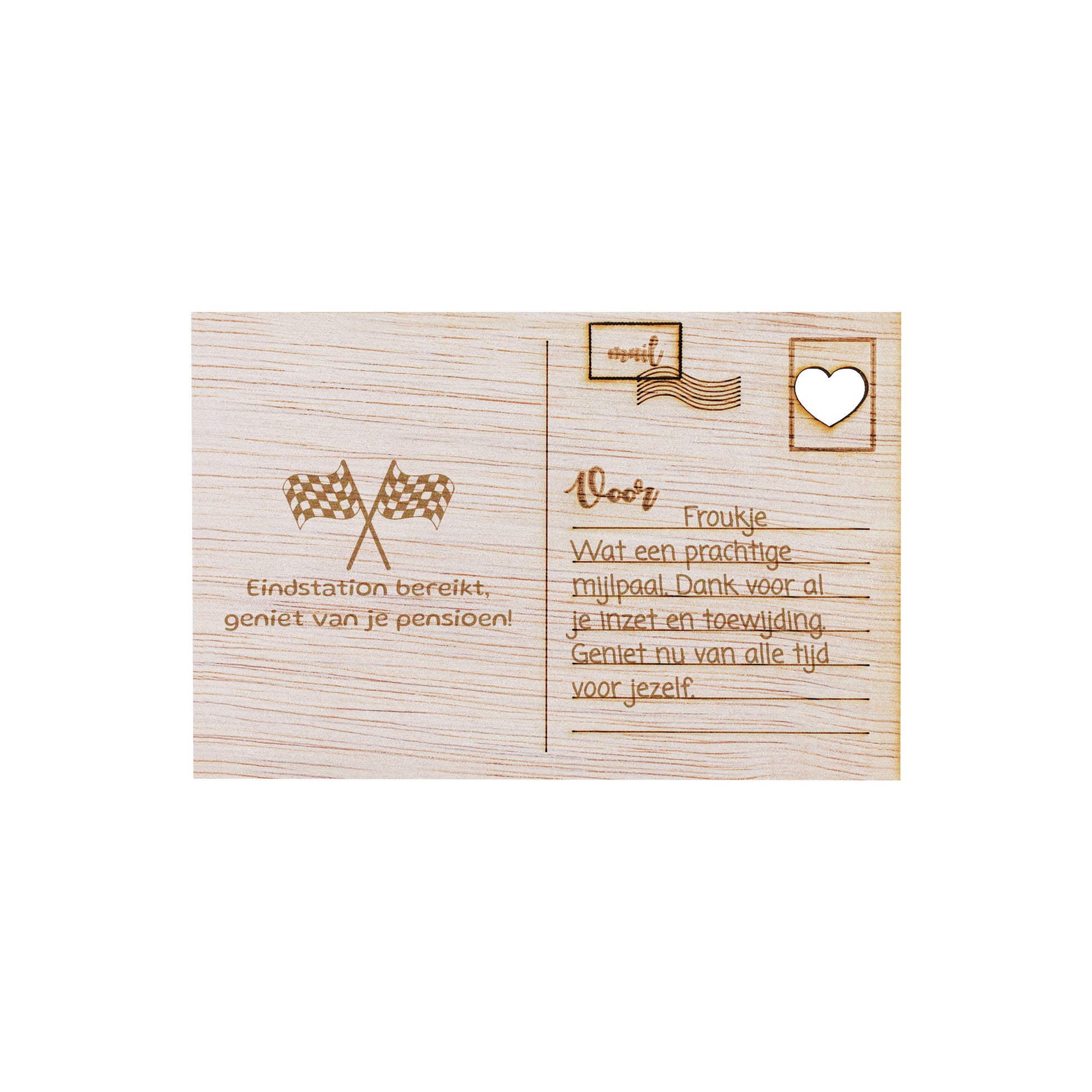 Markeer een bijzonder werk gerelateerd moment met onze stijlvolle houten kaart, met zorg vervaardigd uit hoogwaardig, natuurlijk hout voor een tijdloze en professionele uitstraling. De verfijnde gravures en warme, organische tinten benadrukken waardering, trots en nieuwe stappen. Deze unieke kaart is perfect om felicitaties, dankbaarheid en goede wensen te delen bij mijlpalen zoals een promotie, pensioen, nieuwe baan of afscheid — een blijvende herinnering aan een betekenisvol moment.
