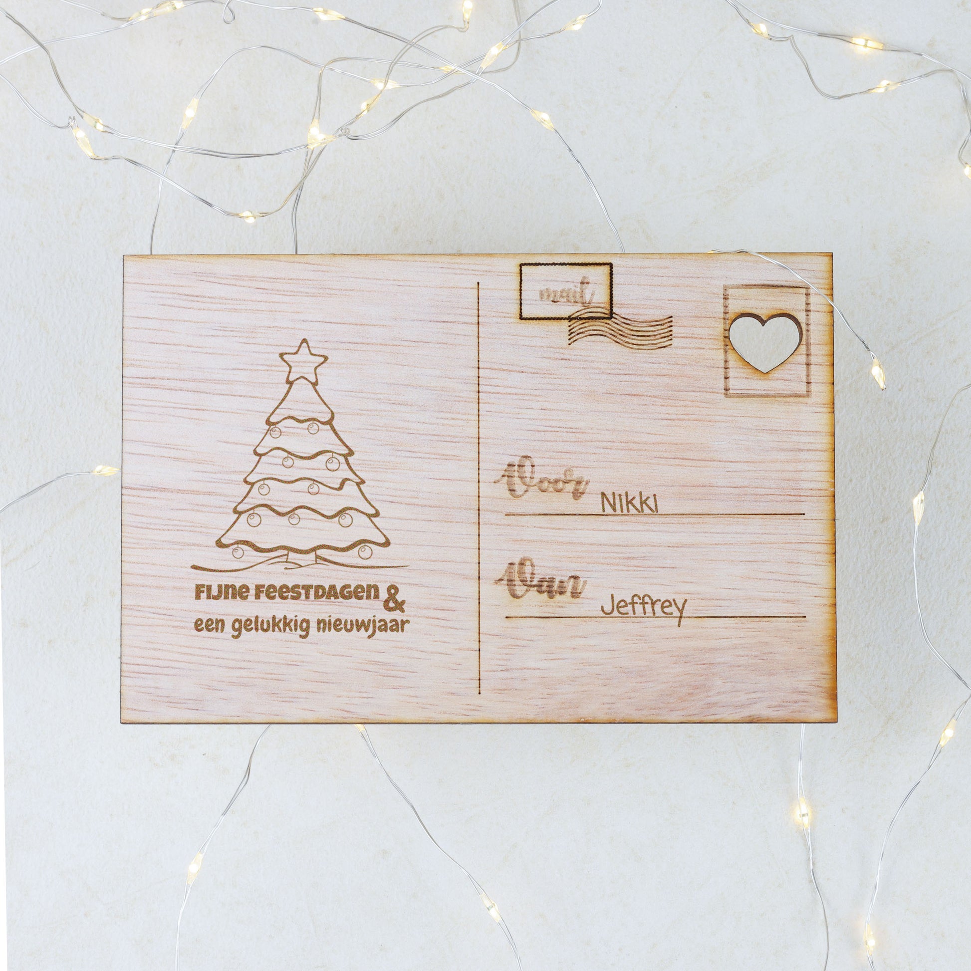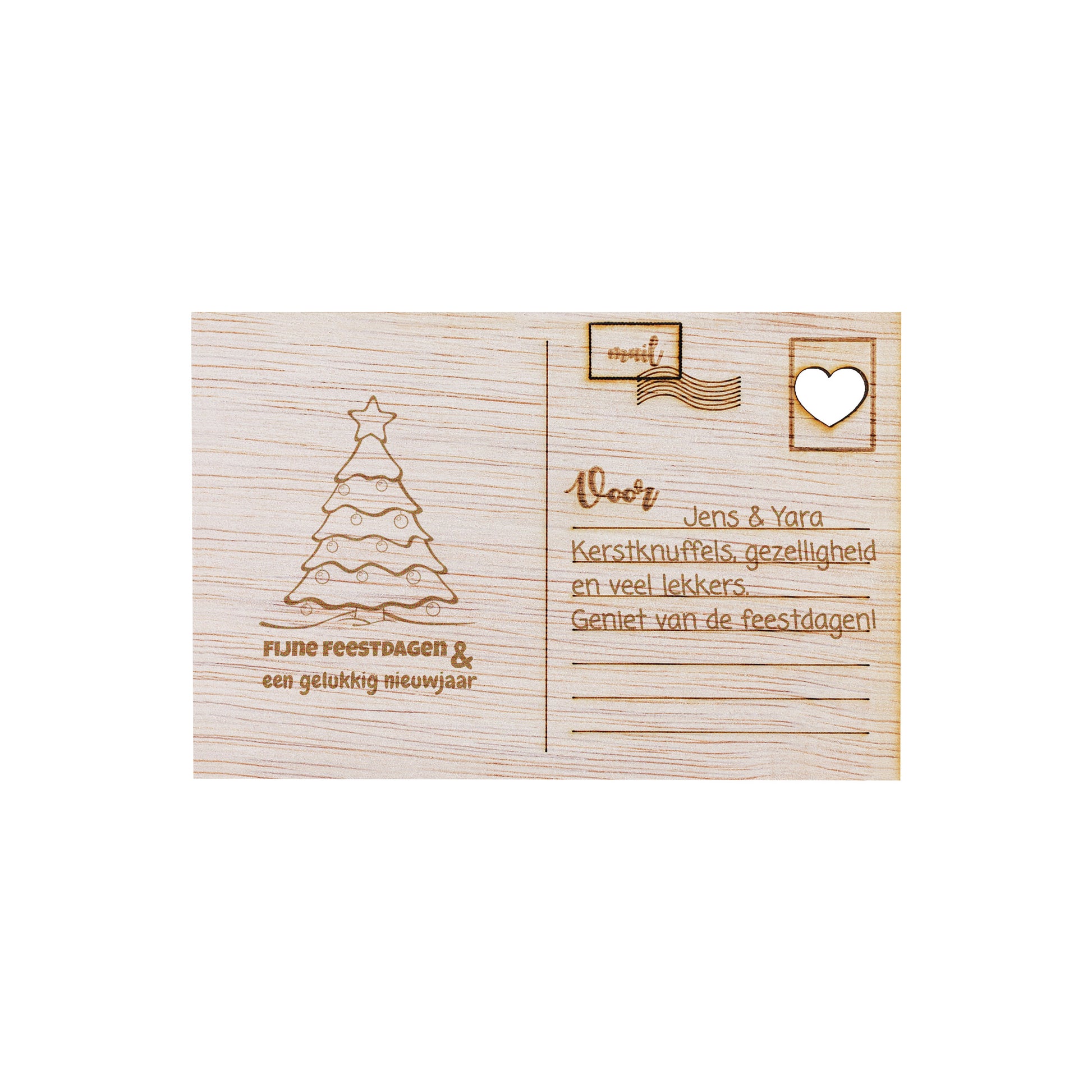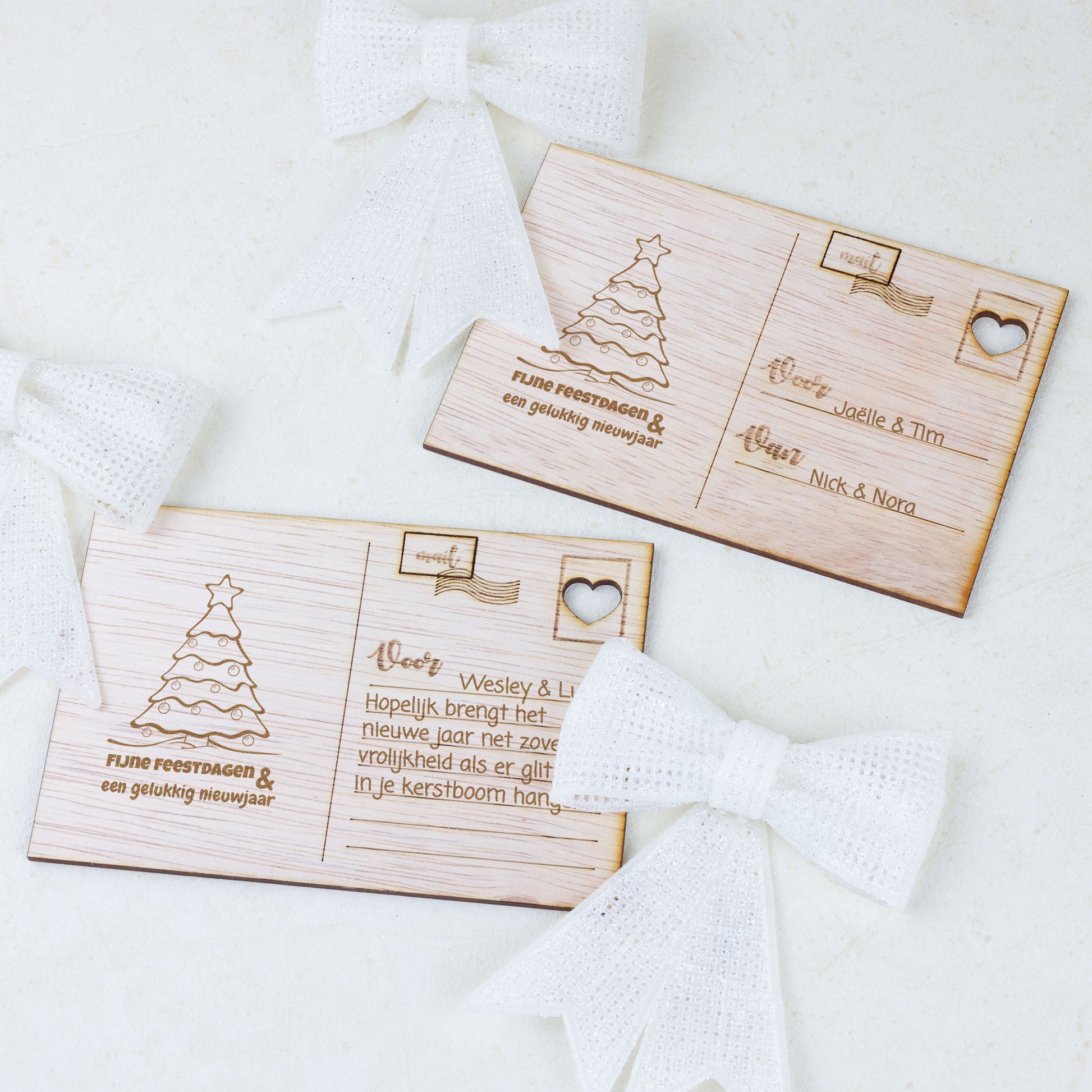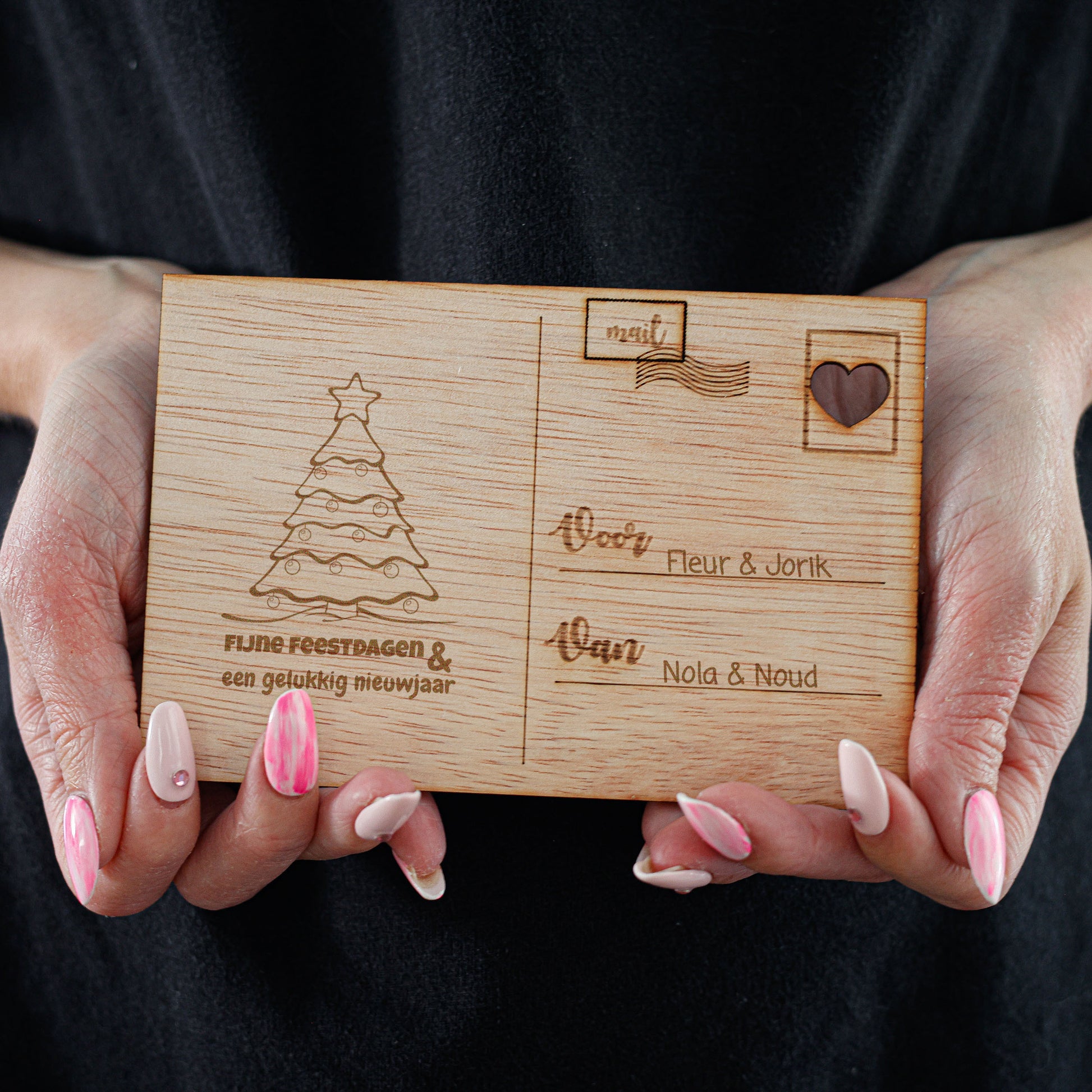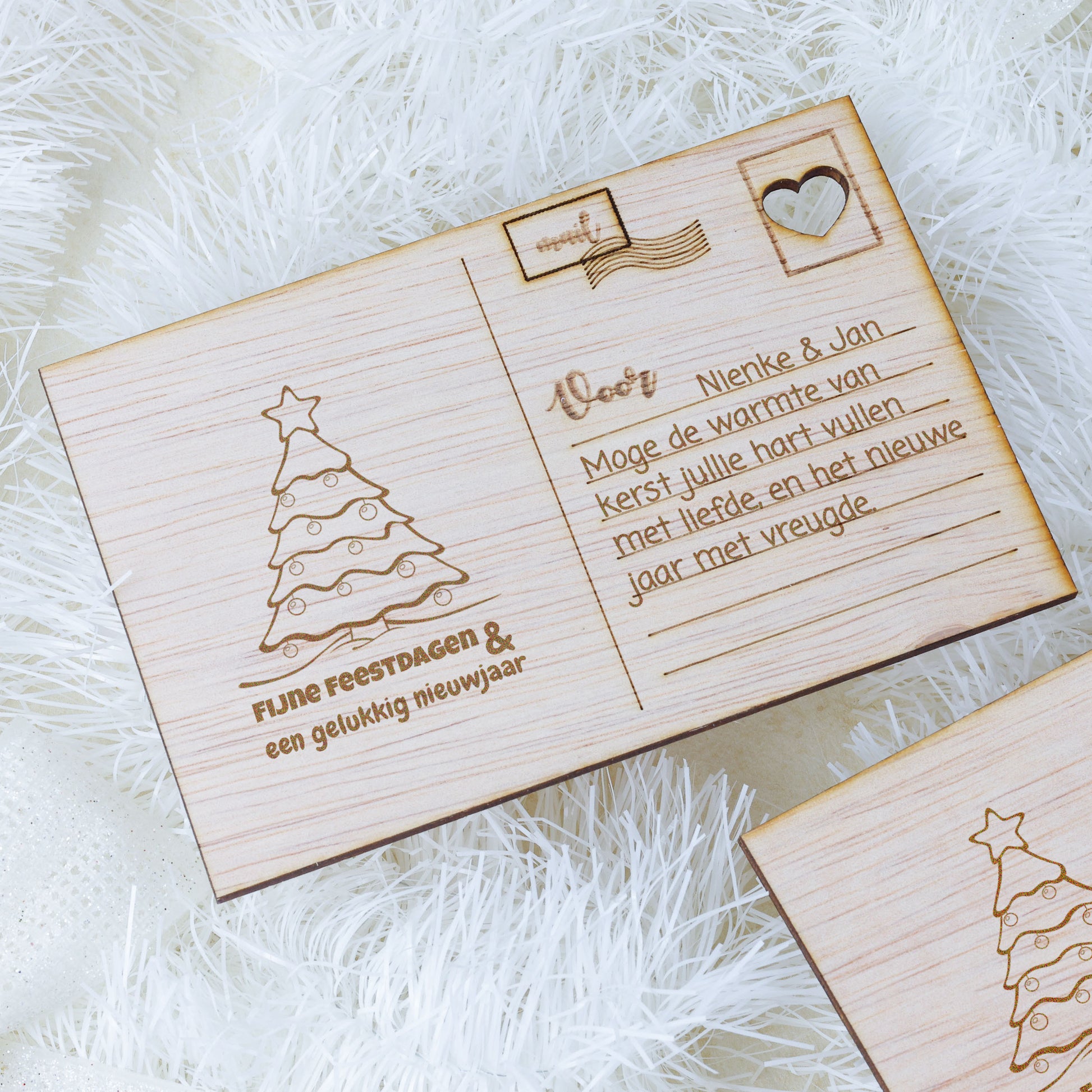 Verspreid warmte en vreugde tijdens de feestdagen met onze prachtige houten kerstkaart, met zorg vervaardigd uit hoogwaardig, natuurlijk hout voor een uniek en feestelijk geschenk. Met zijn betoverende, rustieke uitstraling en verfijnde gravures straalt deze kaart een gevoel van gezelligheid en traditie uit, perfect om je kerstgroeten en beste wensen over te brengen aan geliefden. Elk detail, van de fijne houtnerf tot de feestelijke afbeeldingen, maakt deze kaart een tijdloos aandenken aan de magie van de kerstperiode.