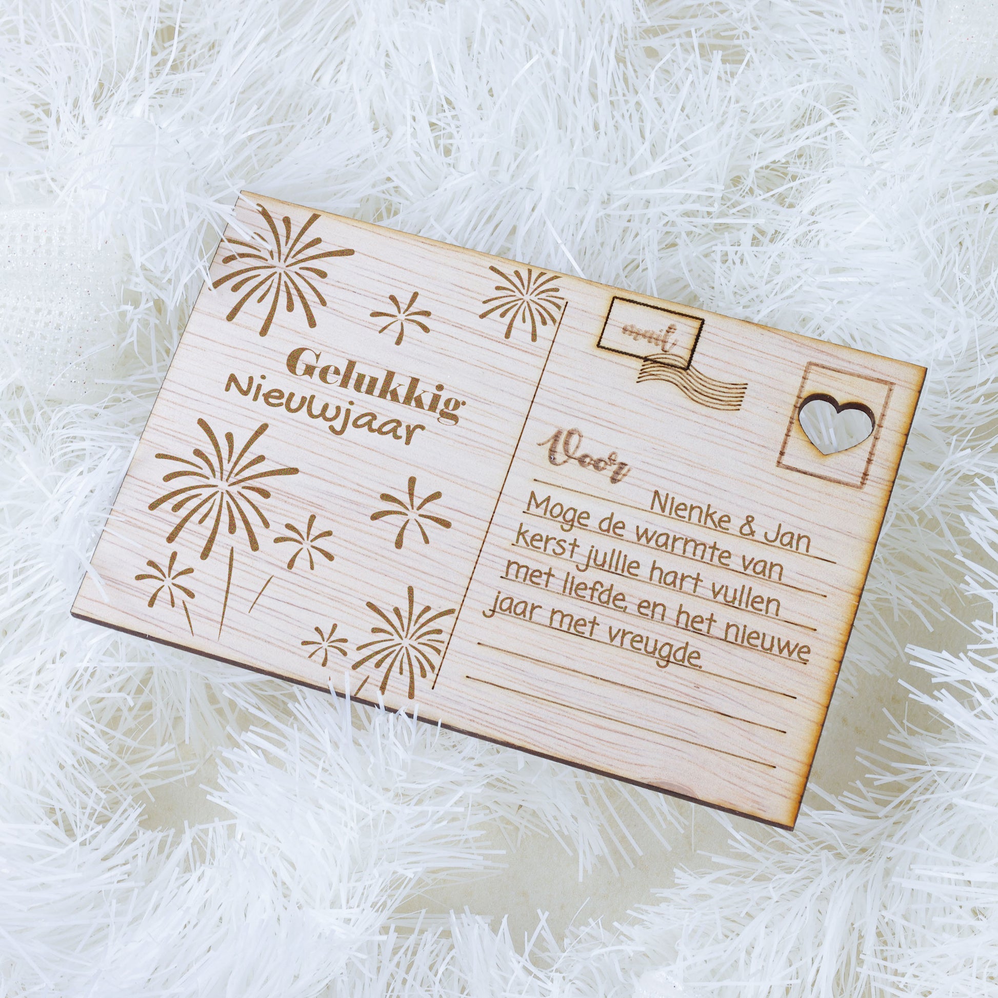 Verspreid warmte en vreugde tijdens de feestdagen met onze prachtige houten kerstkaart, met zorg vervaardigd uit hoogwaardig, natuurlijk hout voor een uniek en feestelijk geschenk. Met zijn betoverende, rustieke uitstraling en verfijnde gravures straalt deze kaart een gevoel van gezelligheid en traditie uit, perfect om je kerstgroeten en beste wensen over te brengen aan geliefden. Elk detail, van de fijne houtnerf tot de feestelijke afbeeldingen, maakt deze kaart een tijdloos aandenken aan de magie van de kerstperiode.