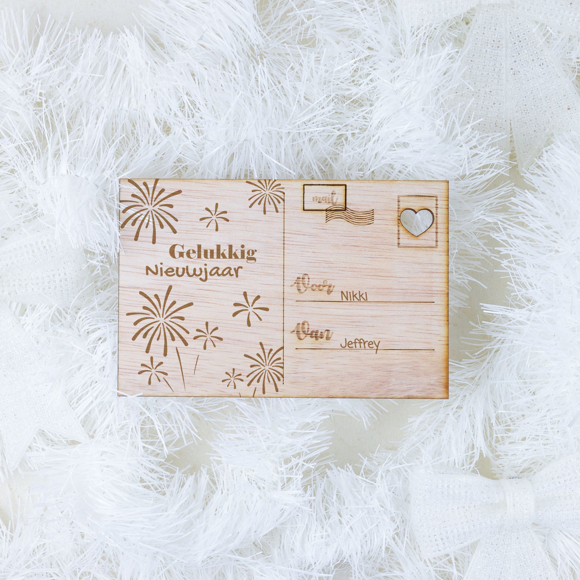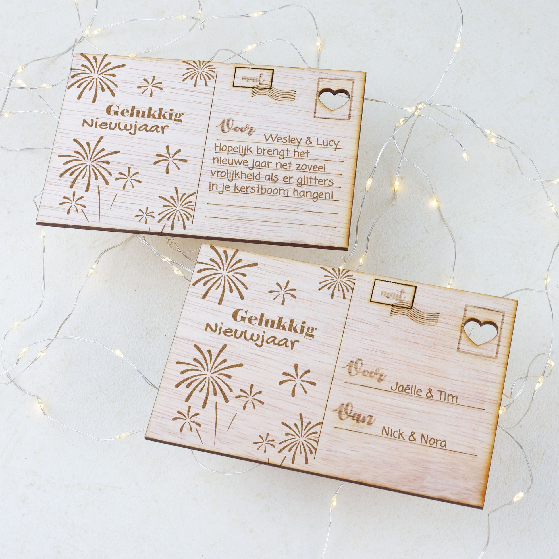 We hebben twee mooie ontwerpen waar je uit kunt kiezen: één zonder berichtje en één met berichtje. Als je een persoonlijk berichtje wilt laten graveren, geef dan hierboven aan welke tekst je erop wilt. Als je nog niet zeker weet wat je wilt graveren of als je liever een berichtje in je eigen handschrift wilt schrijven in plaats van een lettertype, is dat geen probleem! Je kunt achteraf met een balpen nog een berichtje schrijven op het ontwerp met berichtje. Laat ons even weten dat je zelf het berichtje wilt schrijven en we sturen je een lege kaart zonder berichtje toe.