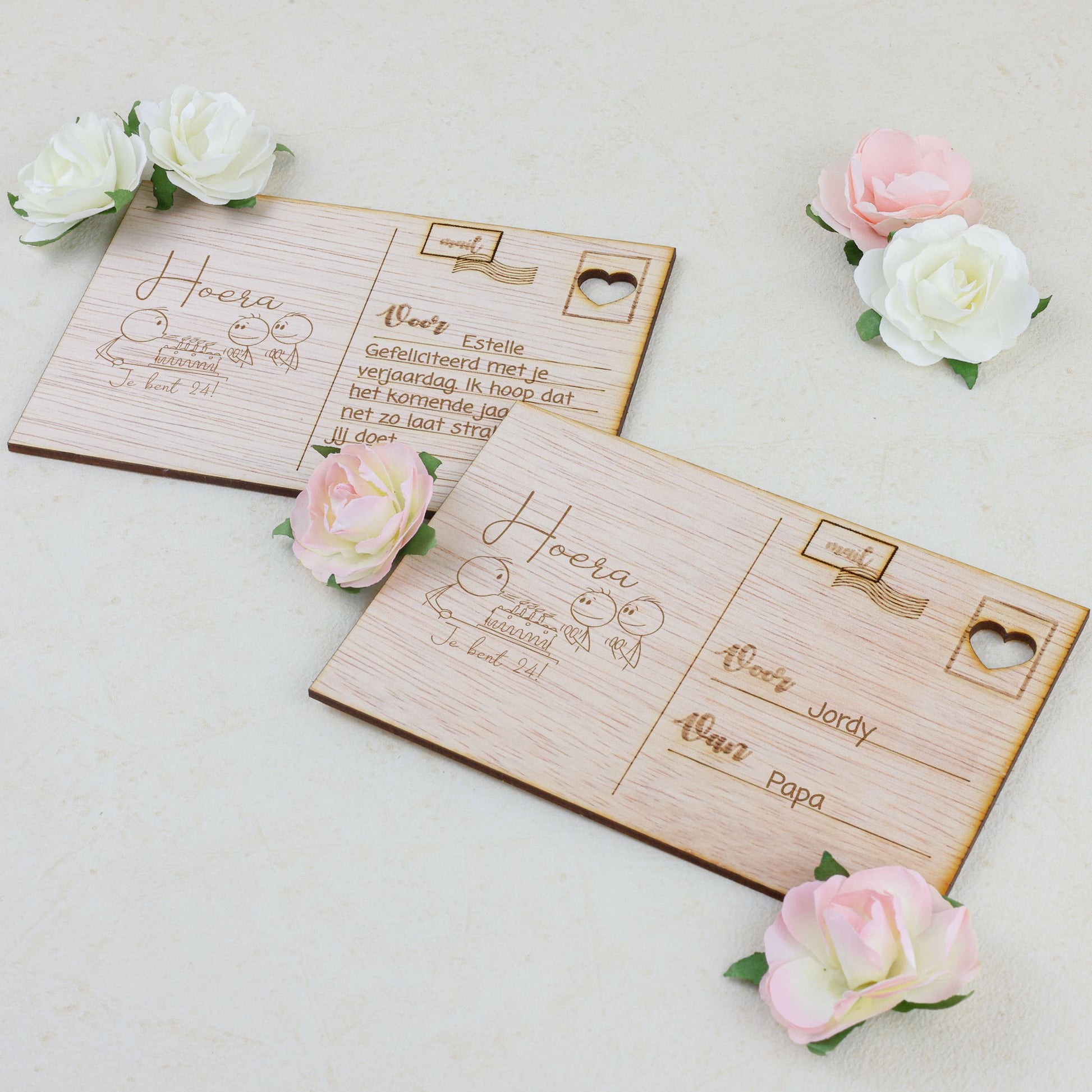 Vier een bijzondere verjaardag met onze prachtige houten kaart, met zorg vervaardigd uit hoogwaardig, natuurlijk hout voor een unieke en tijdloze uitstraling. De verfijnde gravures en warme, organische tinten geven de kaart een persoonlijk en feestelijk karakter. Deze bijzondere kaart straalt authenticiteit en aandacht uit en is perfect om op een verjaardag felicitaties, mooie herinneringen en oprechte wensen te delen voor een nieuw jaar vol geluk en mooie momenten.