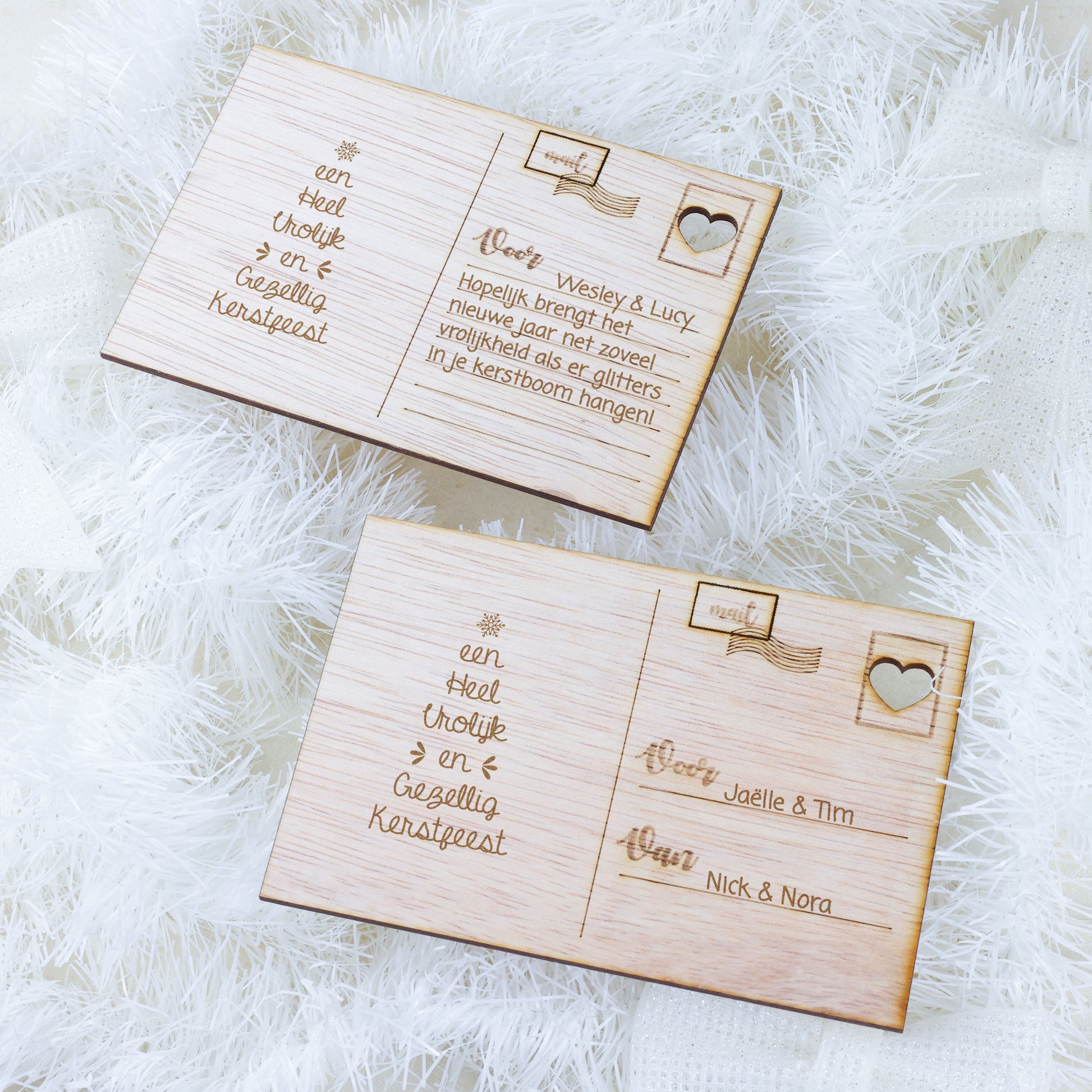 Verspreid warmte en vreugde tijdens de feestdagen met onze prachtige houten kerstkaart, met zorg vervaardigd uit hoogwaardig, natuurlijk hout voor een uniek en feestelijk geschenk. Met zijn betoverende, rustieke uitstraling en verfijnde gravures straalt deze kaart een gevoel van gezelligheid en traditie uit, perfect om je kerstgroeten en beste wensen over te brengen aan geliefden. Elk detail, van de fijne houtnerf tot de feestelijke afbeeldingen, maakt deze kaart een tijdloos aandenken aan de magie van de kerstperiode.