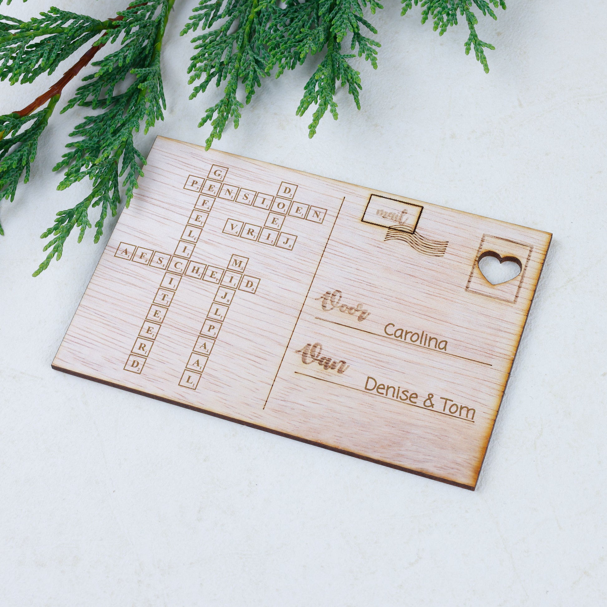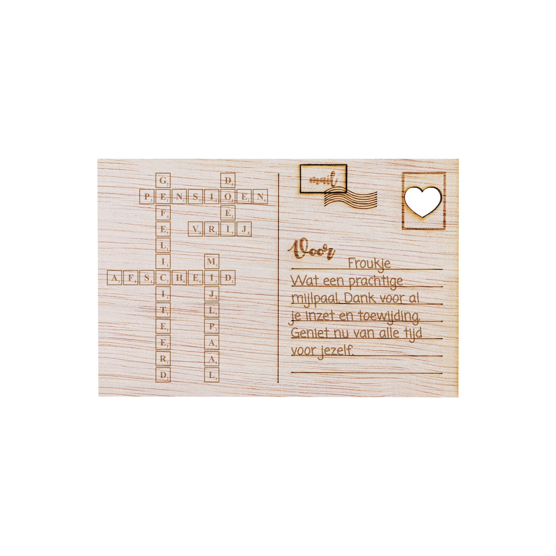 Markeer een bijzonder werk gerelateerd moment met onze stijlvolle houten kaart, met zorg vervaardigd uit hoogwaardig, natuurlijk hout voor een tijdloze en professionele uitstraling. De verfijnde gravures en warme, organische tinten benadrukken waardering, trots en nieuwe stappen. Deze unieke kaart is perfect om felicitaties, dankbaarheid en goede wensen te delen bij mijlpalen zoals een promotie, pensioen, nieuwe baan of afscheid — een blijvende herinnering aan een betekenisvol moment.
