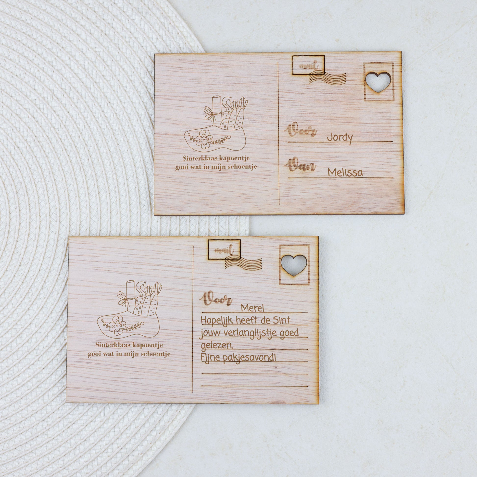 Houten kaart - Sinterklaas kapoentje, gooi wat in mijn schoentje