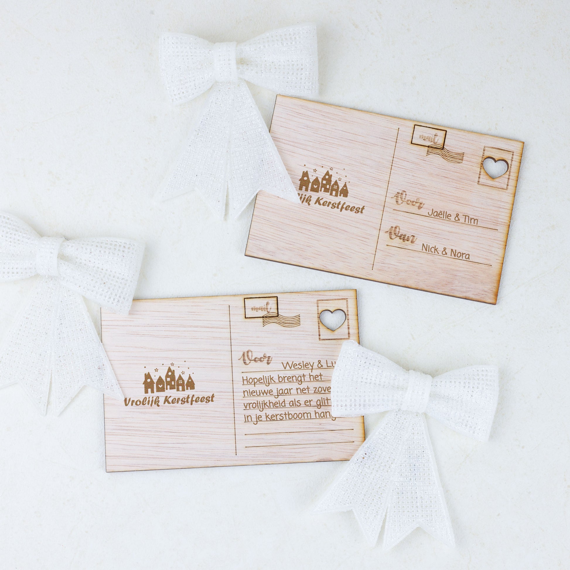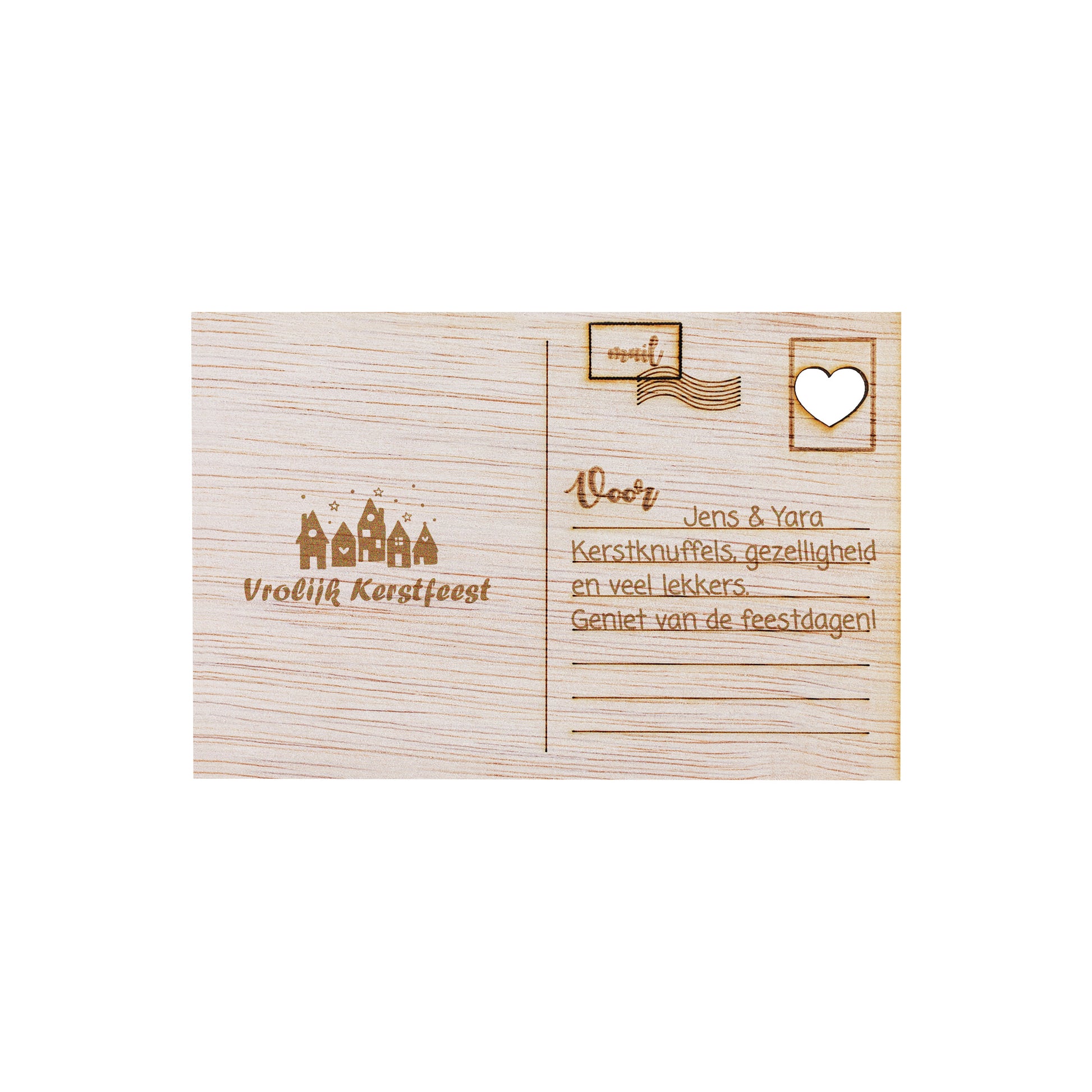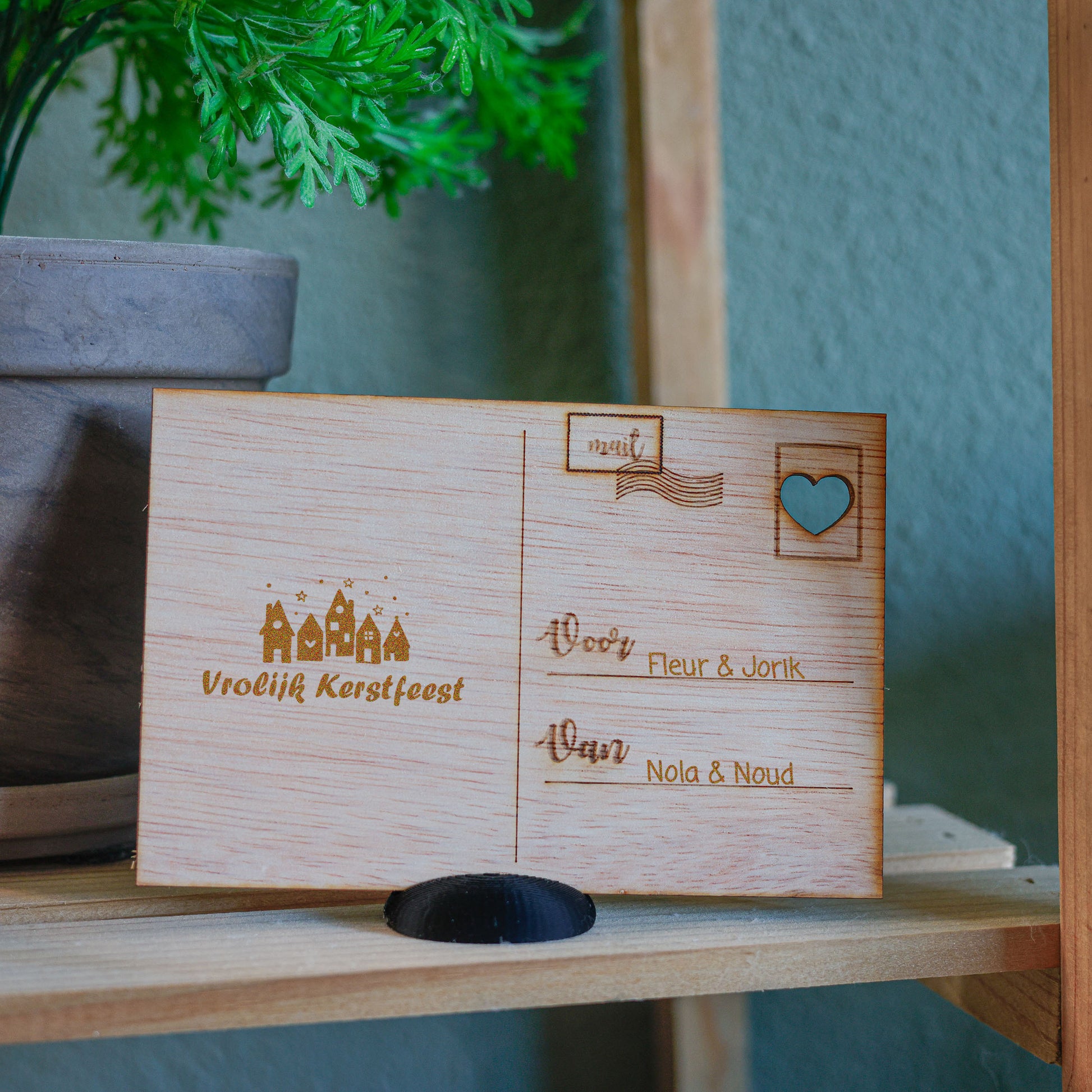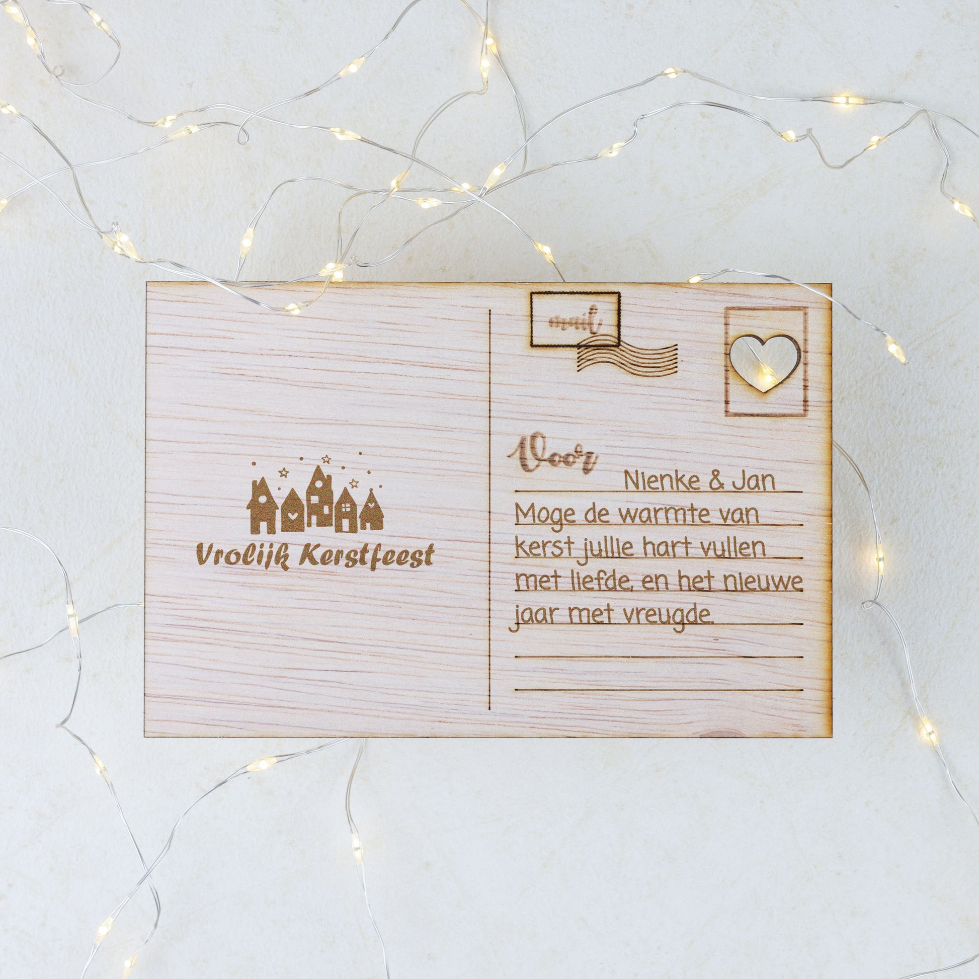 Verspreid warmte en vreugde tijdens de feestdagen met onze prachtige houten kerstkaart, met zorg vervaardigd uit hoogwaardig, natuurlijk hout voor een uniek en feestelijk geschenk. Met zijn betoverende, rustieke uitstraling en verfijnde gravures straalt deze kaart een gevoel van gezelligheid en traditie uit, perfect om je kerstgroeten en beste wensen over te brengen aan geliefden. Elk detail, van de fijne houtnerf tot de feestelijke afbeeldingen, maakt deze kaart een tijdloos aandenken aan de magie van de kerstperiode.