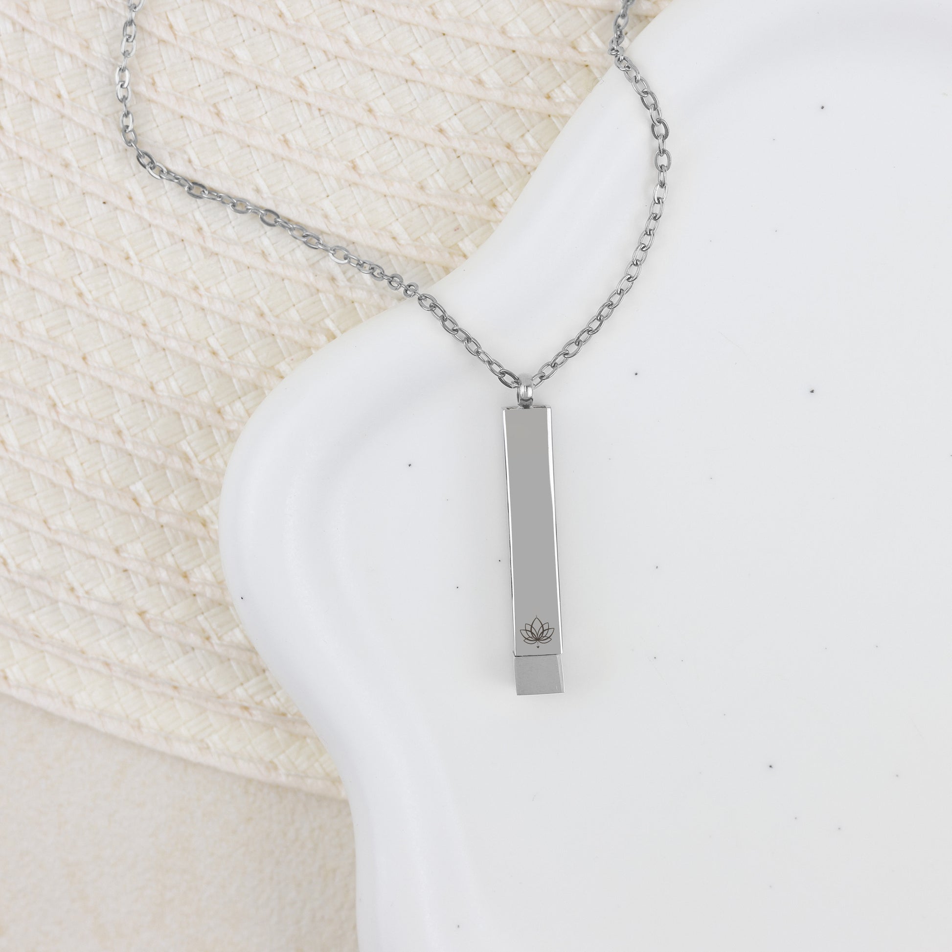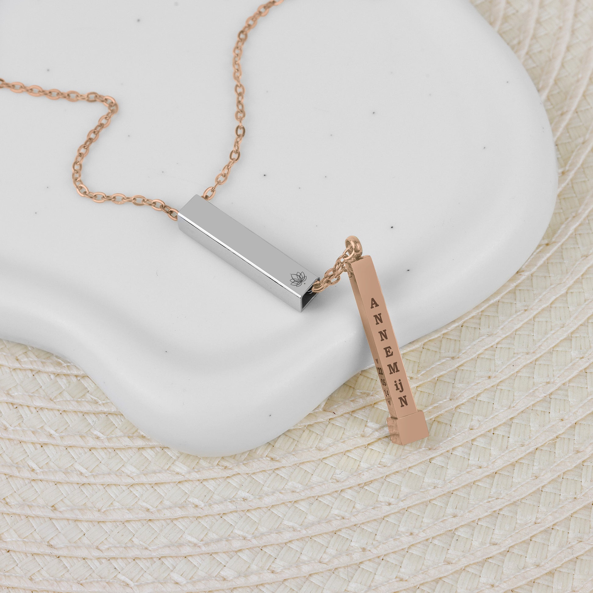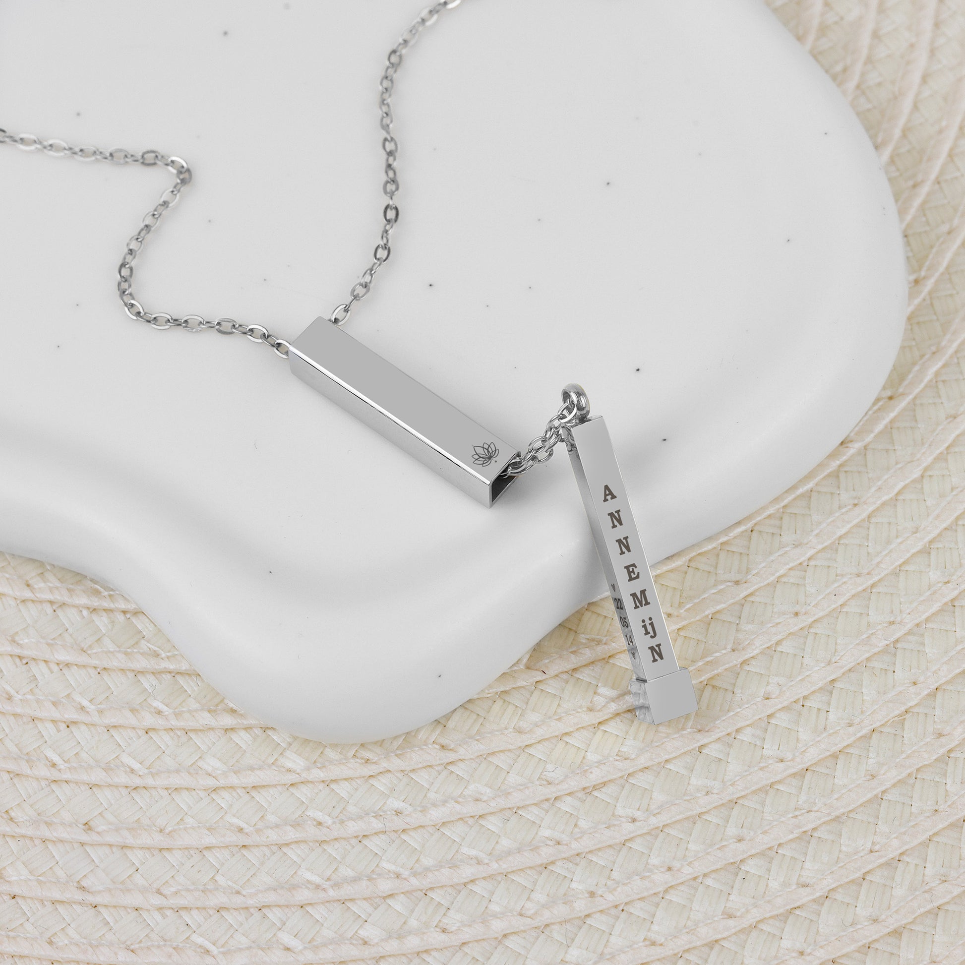 Onze betekenisvolle About You ketting: een subtiel sieraad met een bijzonder geheim, over jou. Aan de buitenkant zie je een elegant kokertje met een gegraveerde lotusbloem – hét symbool voor innerlijke kracht. Maar de echte boodschap zit vanbinnen: een verborgen staafje dat je eruit kunt schuiven, gegraveerd met de persoonlijke gegevens van jou, of een dierbaar persoon. Denk aan een naam, geboortedatum en geboortebloem – een klein, intiem verhaal dat altijd bij je gedragen wordt.