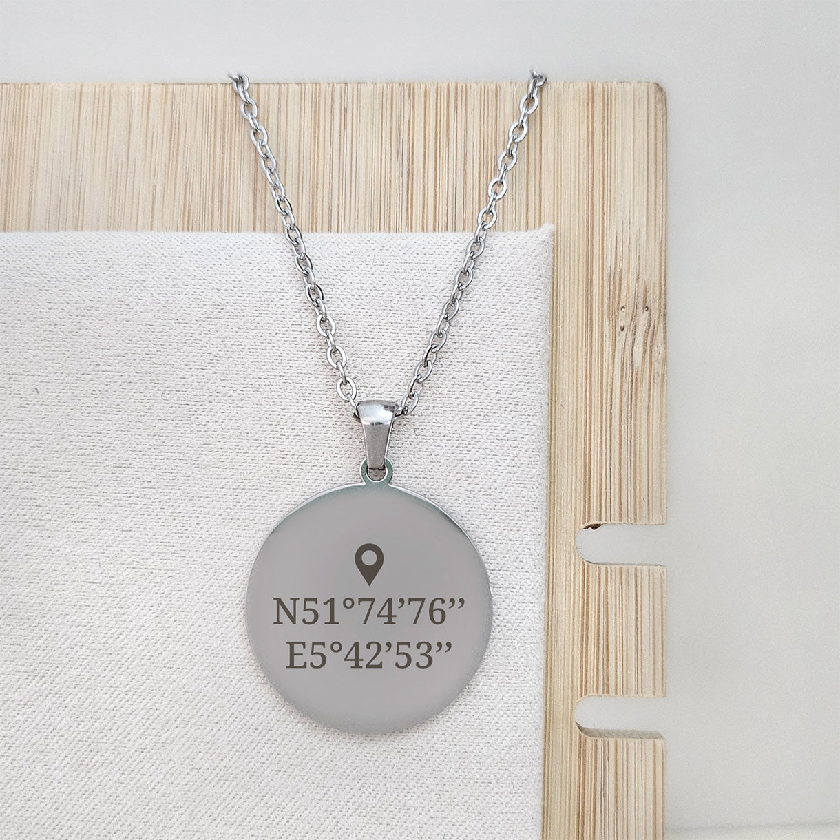 Welke plek heeft veel betekenis voor jou? Geef deze plek op, wij zoeken de bijpassende coördinaten en graveren deze op de ketting. Zo word je altijd aan die speciale plaats herinnerd. Kies je favoriete lettertype en laat de coördinaten van die belangrijke plek vereeuwigen. Of het nu de plek is van je eerste huis, de plek waar jij en je partner elkaar hebben ontmoet, of een andere plaats die veel voor jou betekent… hiermee creëer jij een ketting vol betekenis.