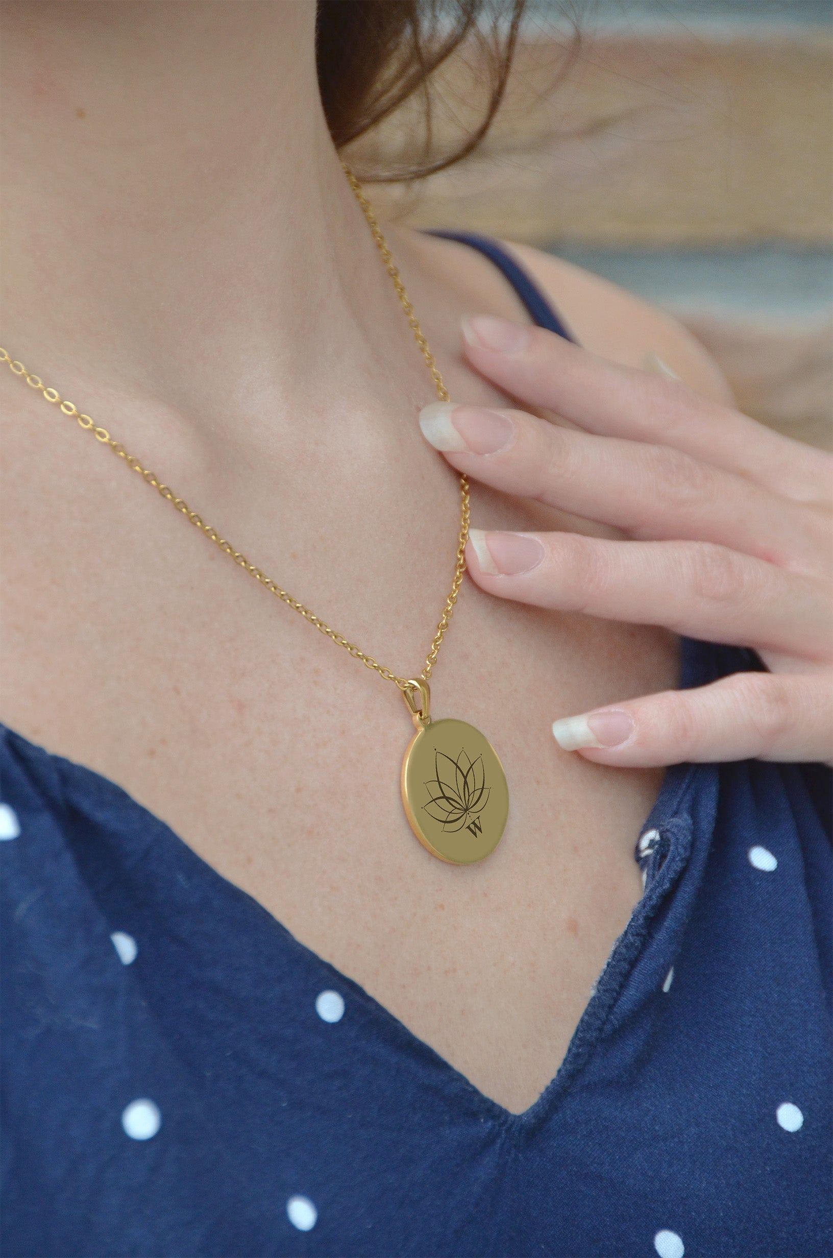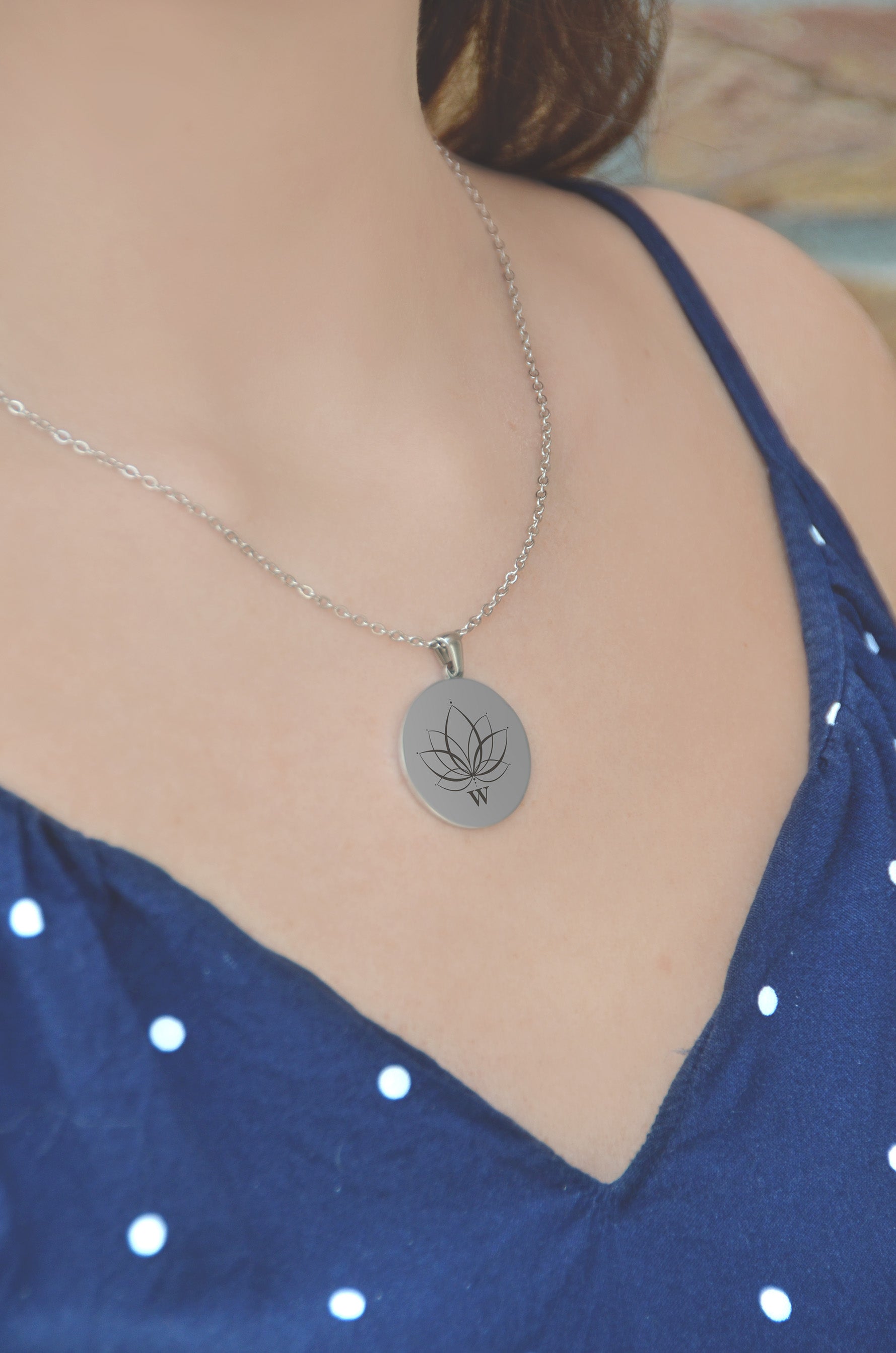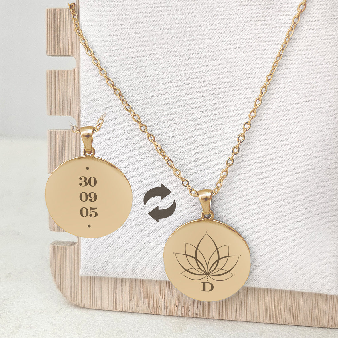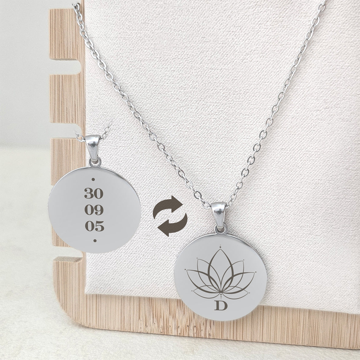 Laat op de voorkant jouw initiaal (of die van een geliefde) graveren, samen met een mooie lotusbloem. Met op de achterkant de bijbehorende geboortedatum creëer je een ketting met echte betekenis. Een steuntje in de rug, om je elke dag opnieuw te motiveren er iets moois van te maken.