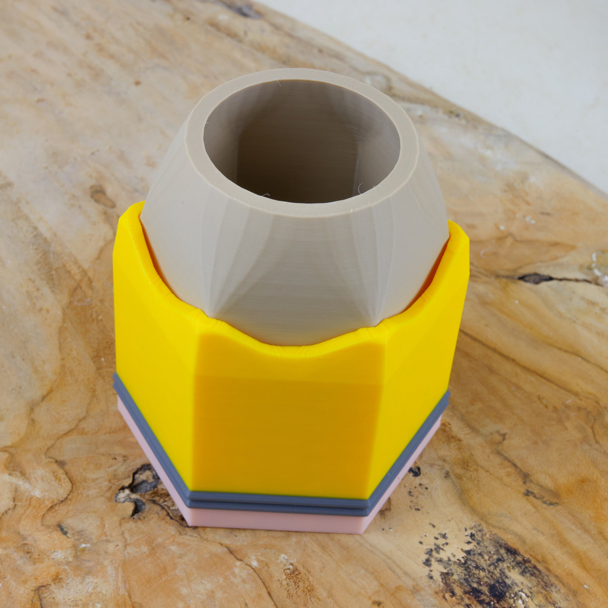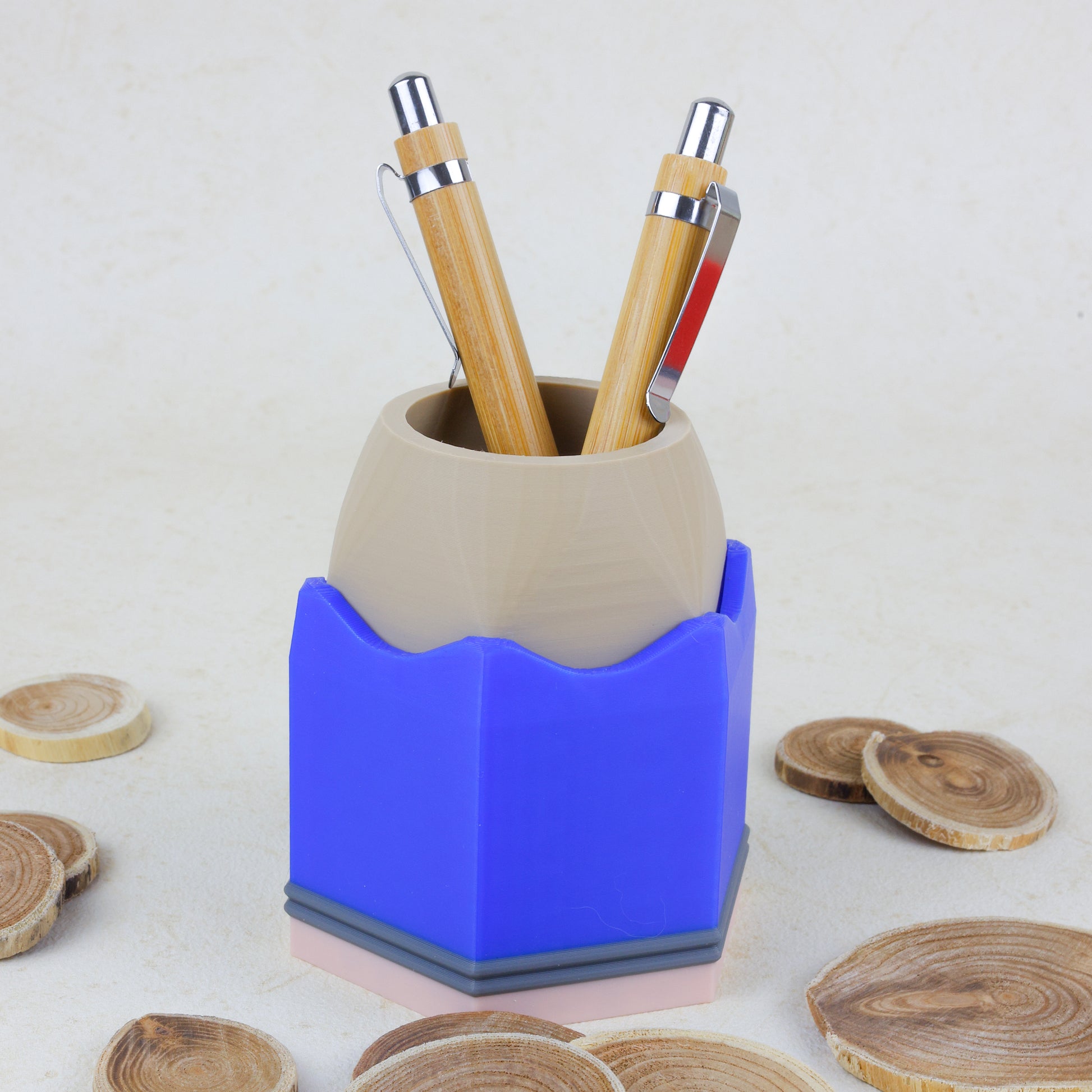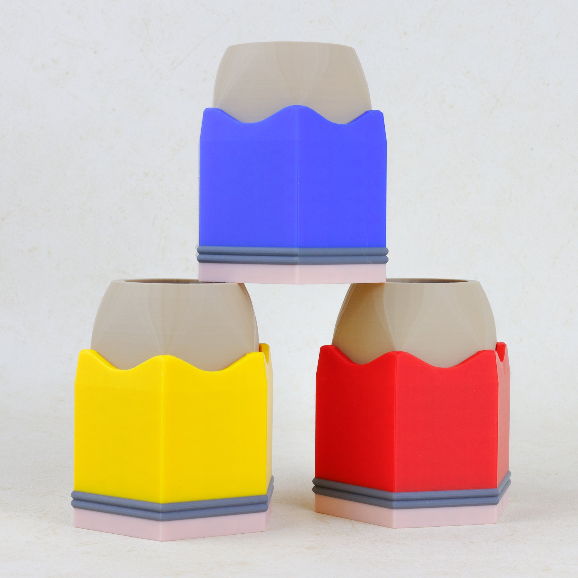 Breng kleur en vrolijkheid naar je bureau met onze potlood-pennenbak! Het bakje biedt voldoende ruimte voor pennen, potloden en andere schrijfwaren, zodat je werkplek netjes en overzichtelijk blijft. Een uniek en creatief ontwerp voor op je bureau, dat daarnaast ook functioneel is. Het pennenbakje is verkrijgbaar in rood, geel en blauw, en wordt met zorg gemaakt met een 3D-printer.