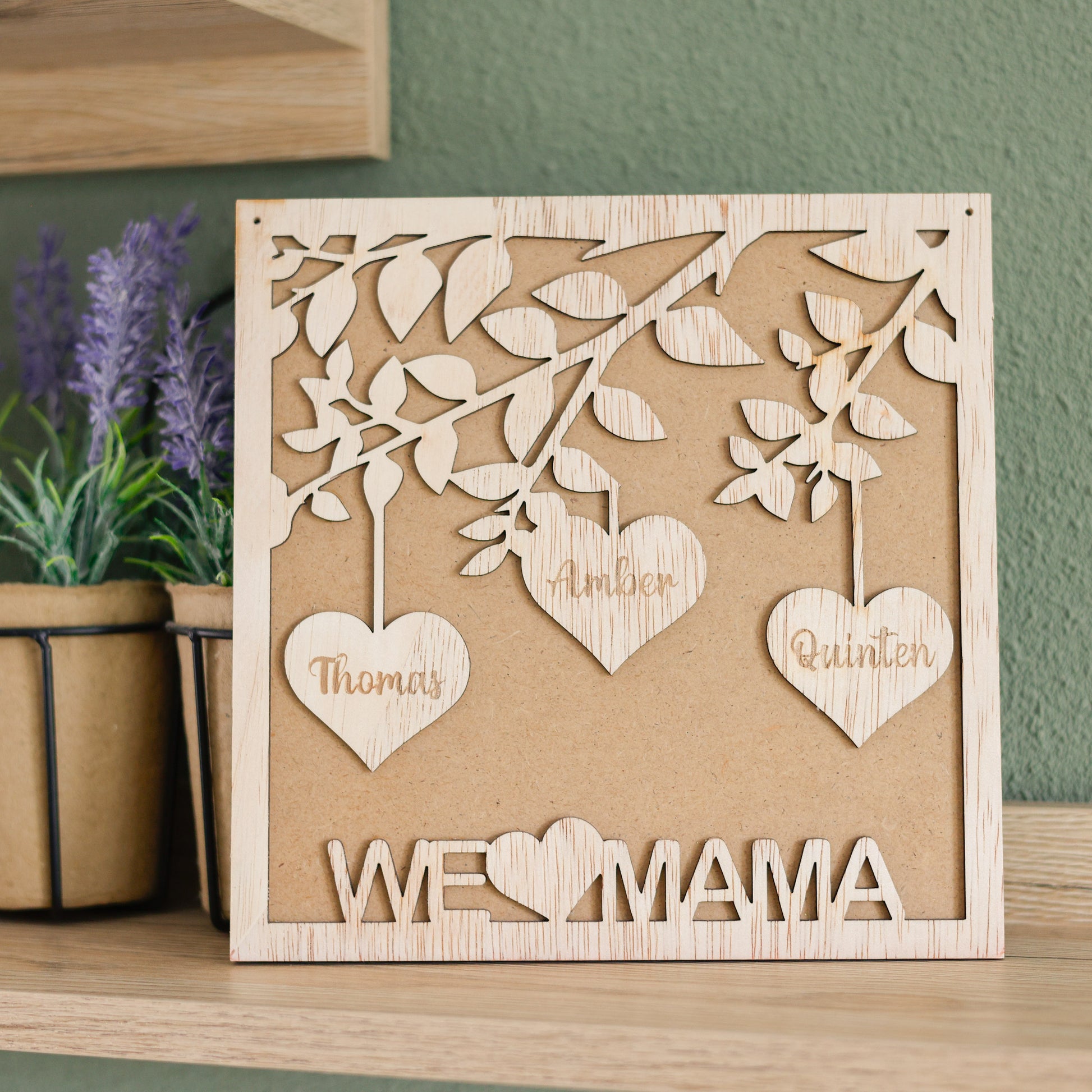 Breng de familiebanden tot leven met deze houten stamboom voor het gezin. Personaliseer de stamboom met de namen van 2 tot maximaal 6 geliefde familieleden. Onderaan de stamboom staat de hartverwarmende boodschap 'We love ...', waarbij je de mogelijkheid hebt om de naam van een speciaal familielid in te vullen. Dit zorgt voor een ontroerend en persoonlijk accent aan je interieur, waardoor elke keer dat je ernaar kijkt warme gevoelens opgewekt worden.